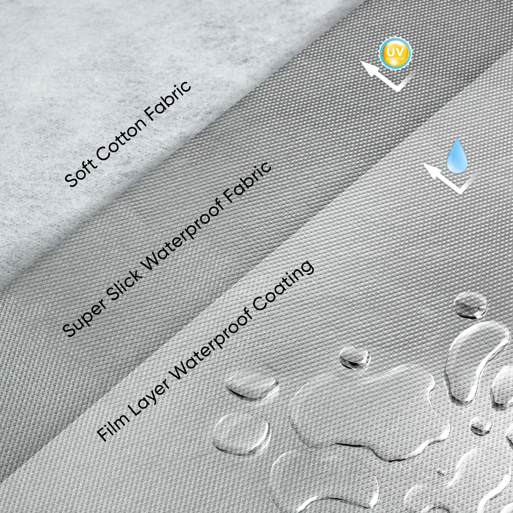 2. Super Slick Fabric dibekali 3 lapis bahan (Film Layer Waterproof Coating, Super Slick Waterproof Fabric, Soft-cotton Fabric).